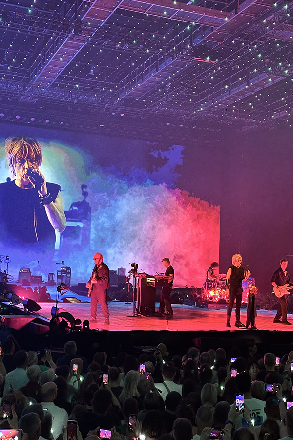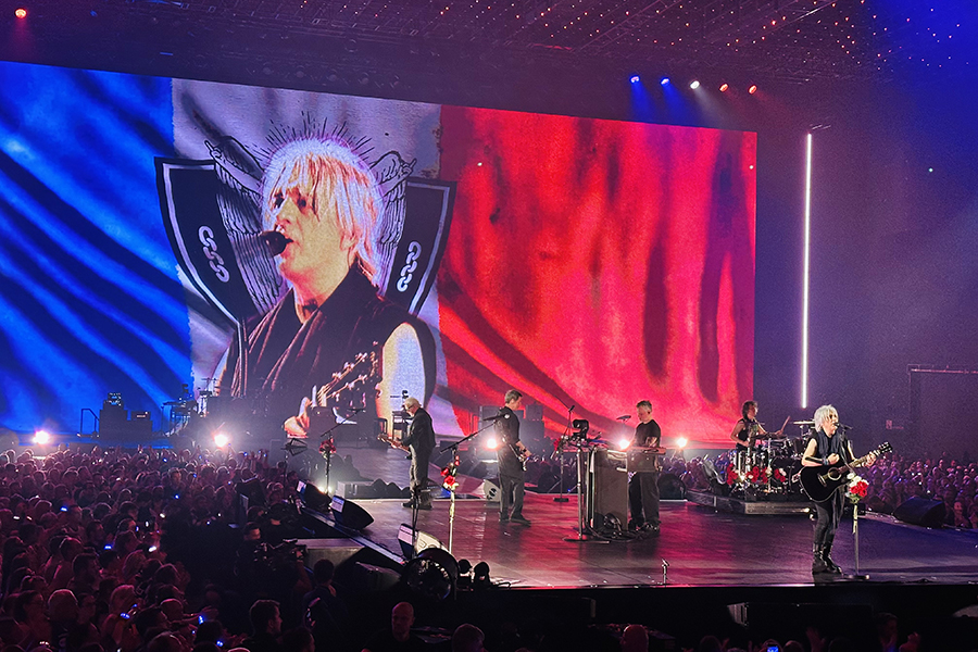 On entre dans le Zénith, et derrière un rideau noir on découvre la salle où le groupe été déjà sur la scène en train de répéter. Lorsque nous sommes arrivés ils étaient en train de répéter Station 13. J’étais submergée de tant d’émotions à ce moment-là… Entre voir la salle sans public, juste l’énorme scénographie propre à cette tournée de l’Arena Tour, et le groupe dans un contexte différent des concerts, je me dis que c’est un sacré privilège ! Antony nous dit que nous pouvons prendre autant de photos et de vidéos qu’on veut, et surtout de profiter un maximum. Tout le long de la journée, il nous raconte une multitude de choses, d’anecdotes, de petites exclues à venir, et répond volontiers à toutes nos questions ; c’était absolument passionnant !