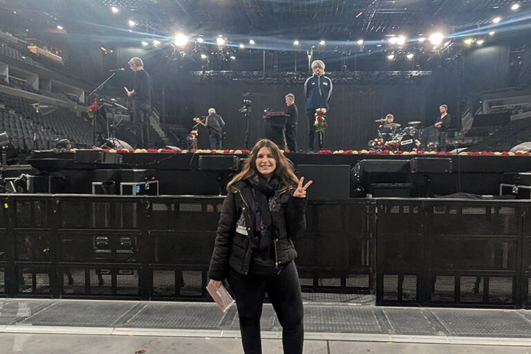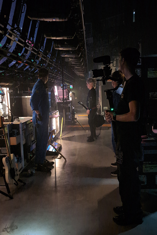 On les suit ensuite en file indienne jusqu’à derrière la scène. On entend l’intro se lancer sur l’écran, le public qui crie, j’en ai eu des frissons car de derrière, le son n’est pas le même que lorsqu’on est dans le public ! C’était magnifique d’entendre le public en harmonie. Je vois le groupe se concentrer, prendre l’énergie du public, se faire des check, des petits pas de décompression.
