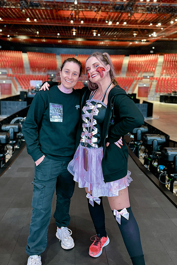 On les accompagne jusqu’à leur montée sur scène, on est derrière cet écran géant, tout le monde se check et se prépare, il y a la dernière musique Road To Nowhere qui passe, on fait les carrés avec Éloïse.