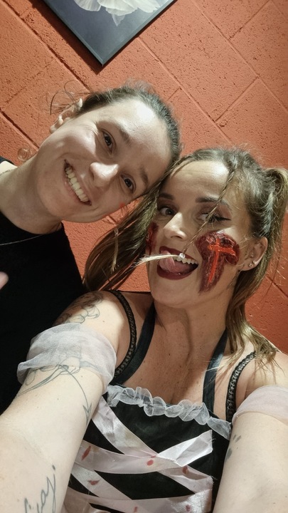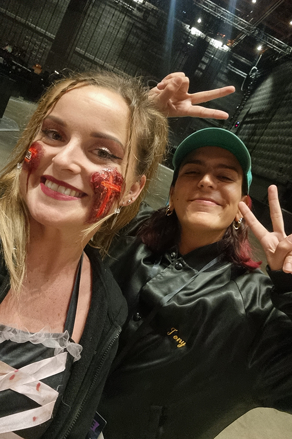 15h20 je suis déguisée et maquillée, Julia m’accompagne au lieu de rendez-vous derrière le Zénith. Je rencontre Éloïse, la seconde IndoReporter.