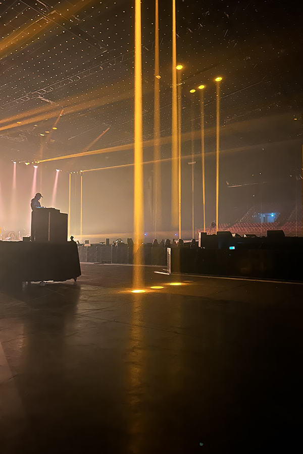 Afin de respecter leur intimité, nous retournons dans la salle où nous assistons aux derniers réglages lumières et aux répétitions de Lou. Son DJ set envoie déjà très fort, j’ai hâte de le découvrir en conditions réelles avec le public !