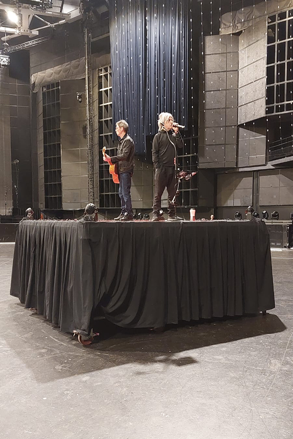 Antony nous accompagne en Backstage, il aura un mot pour chacun expliquant les tâches de ses équipiers : le son, l’image, le prompteur… et nous découvrons l’ampleur de la structure qui concourt à la beauté de la scénographie.