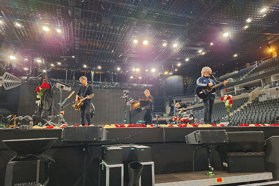 Nous rentrons directement dans l’Arena et nous découvrons Indochine en train de répéter Kimono dans l’Ambulance qui sera joué prochainement en hommage.