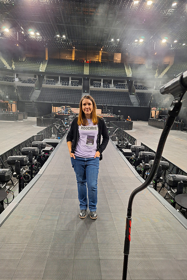 A cet instant, nous sommes situées juste derrière l’immense écran et assistons aux minutes précédant la montée sur scène, les techniciens préparent les derniers ajustements.