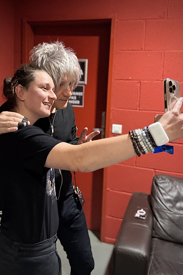 15h45 – On rentre dans le Zénith. Ah ! Ce Zénith que je connais si bien car un an plus tôt c’est moi qui étais sur scène pour y être diplômée ! Arrivées dans la salle, un calme olympien y règne ! On croise Lou Sirkis dans la fosse. Le temps d’une petite photo avec elle, le groupe commence à répéter. On entend les premières guitares sonner. On reconnait de suite Marilyn avec Alizée ! Antony nous explique que Nicola chante très peu lors des répétitions afin de préserver sa voix. Le groupe enchaîne ensuite avec LadyBoy, puis Boris et Nicola se dirigent vers la scène C pour répéter Dunkerque (surprise de ce soir durant le set acoustique). Retour sur la scène B, le groupe se met à répéter une petite dinguerie, un titre qui n’a pas été joué depuis des années. No spoil, promis.