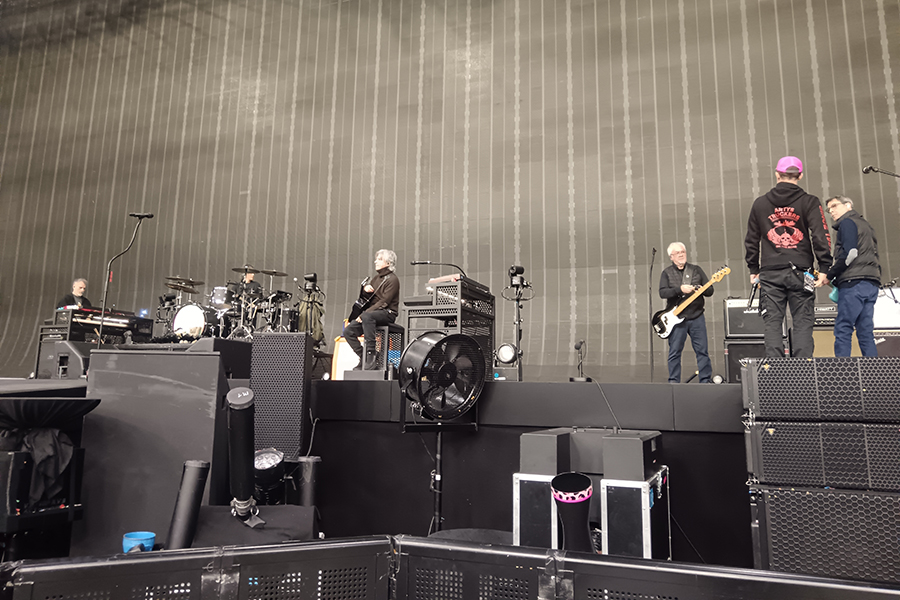 Puis nous assistons aux répétitions sur la scène C, placée ce soir très proche des gradins. Je me dis que, comme d’habitude, la proximité avec le public est une des priorités du groupe. Tout est calculé pour que chacun des spectateurs ne se sente pas lésé, du premier rang de la fosse au dernier rang des gradins. Il y a toujours un moment dans le show de proximité avec le groupe.