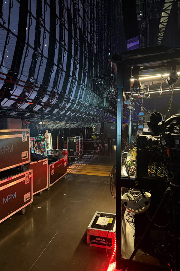 Antony nous explique le fonctionnement de l’écran géant, le système de ventilation, mais aussi les centaines de kilos de confettis biodégradables utilisés, le système pyrotechnique… Toutes ces informations qui rendent le show juste incroyable. Je suis tellement impressionnée de tout ce qui gravite autour et tout le personnel : 30 camions, et 300 personnes nécessaires pour tout démonter à la fin du show !